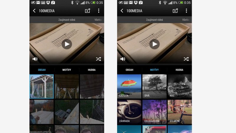 Veľkými zmenami prešla aj Galéria. Prepínanie režimov (Albumy, Udalosti...) je ako na HTC One Max. V obľúbenej funkcii Video Highlights (Zaujímavé videá) môžete použiť vlastnú skladbu, a to ktorúkoľvek jej časť, nielen začiatok. Konečne je možné spraviť zostrih aj chronologicky, aktivovať pôvodné zvuky videí a využiť nové, ešte lepšie farebné filtre a motívy.