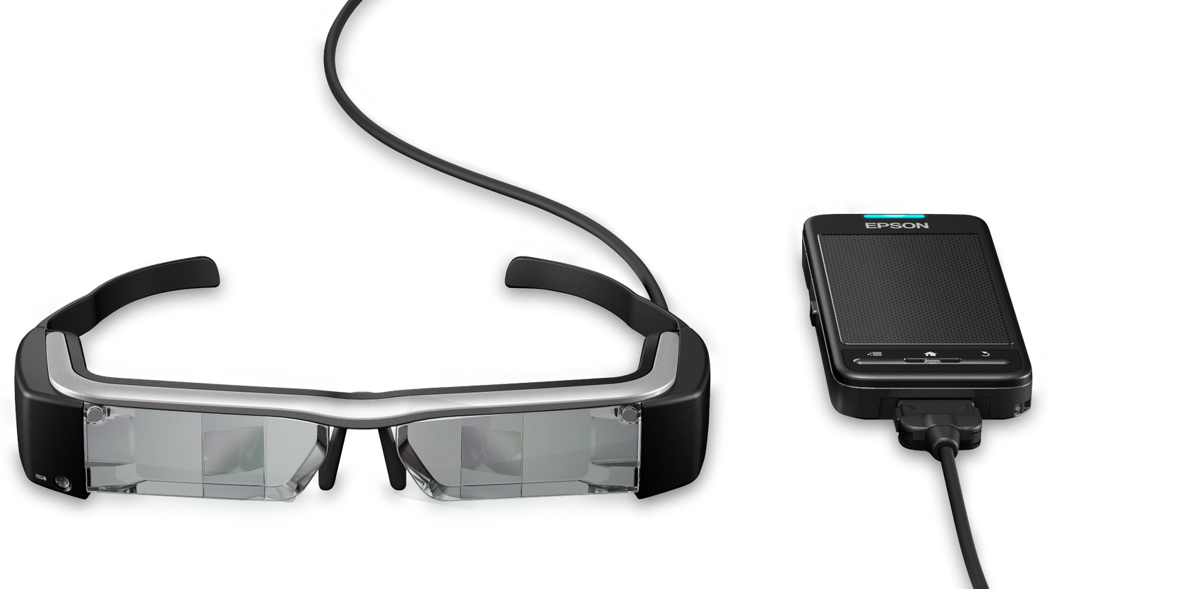 Pri pojme smart-glasses si určite väčšina z vás predstaví smart okuliare od Google. Hlavným rozdielom medzi týmito zariadeniami je spôsob ovládania. Moverio BT-200 sa totižto neovláda hlasom, ale zariadením pripojeným k okuliarom prostredníctvom káblu.