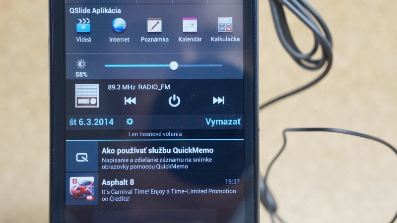 Pod skratkami sa nachádza panel QSlide aplikácií. Sú to malé aplikácie, ktoré sa zobrazia pred tými klasickými a pomôžu vám v určitých situáciách. Napríklad pri prezeraní eshopu si zobrazím QSlide aplikáciu kalkulačky. Okno tejto miniaplikácie si môžem umiestniť do ľubovoľnej časti displeja, viem meniť jeho veľkosť a dokonca aj priehľadnosť.