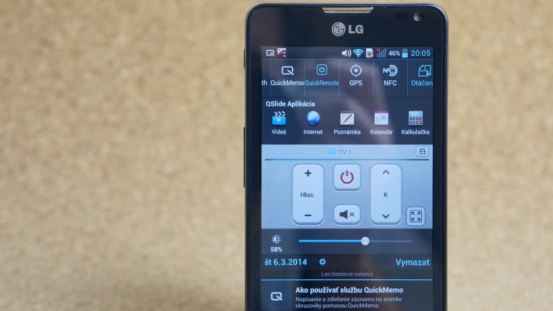 Infračervený port v smartfónoch tejto cenovej relácie sa len tak nevidí. Za to si LG zaslúži veľkú pochvalu. Nájdete ho v hornej stene, hneď vedľa 3,5 mm audio konektora. V aplikácii QuickRemote si môžete pridať viacero ovládačov a rozdeliť ich podľa izieb. V porovnaní s drahšími modelmi od LG je však podpora zariadení a značiek výrazne chudobnejšia. Ovládať môžete iba televízor, DVD a Blu-ray prehrávač. Mne skôr vadilo to, že medzi značkami televízorov nájdeme iba tie najpopulárnejšie. Chýba tu slovenská Orava a ďalšie menej známe značky.