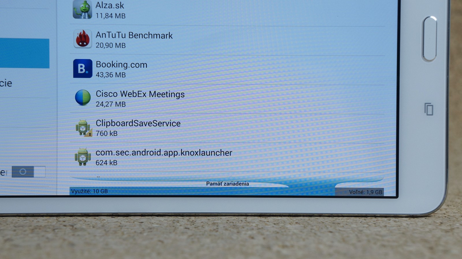 Výkonný hardvér dá o sebe vedieť zvýšenou teplotou v zadnej časti. Stačí len pár minút používania a držanie tabletu je nepohodlné. Zvýšená teplota sa dostaví aj pri menej náročných aplikáciách. Pri hrách je už teplota naozaj vysoká. O spustené aplikácie sa stará operačná pamäť RAM s kapacitou 2 GB. Bez opätovného načítavania som sa mohol preklikávať až medzi šiestimi aplikáciami. Naša 16 GB verzia ponúka reálne dostupných 12 GB. Myslím si, že je to dostatočná hodnota, keďže veľkosť úložiska je možné rozšíriť pomocou microSD karty do 64 GB, na ktorú si môžete aplikácie presunúť.