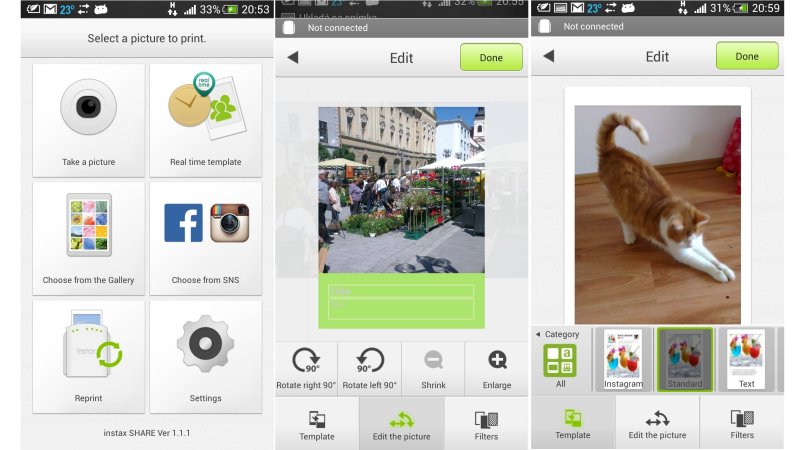 Základom je stiahnutie si aplikácie Instax Share do Androidu 2.3.3 alebo iOS 5.1 a novších. Tá sa spáruje s 253-gramovou (bez kazety) tlačiarňou poháňanou dvojicou batérií typu CR2. Snímku zhotovíte buď rovno v aplikácii,, alebo si vyberiete ktorúkoľvek staršiu z pamäte smartónu, vášho Facebooku či Instagramu.
