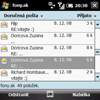 patrí už dlhé roky k špičke. Podpora POP3, IMAP4 a Exchange je samozrejmá. Nechýba možnosť podrobného nastavenia podmienok stiahnutia správ a príloh, ako aj automatická kontrola schránky. Stále mi však chýba štandardná podpora push mailu mimo Exchange, či možnosť stiahnuť správy hromadne zo všetkých kont. Stiahnuté dokumenty môžete prehliadať a následne podľa potreby upravovať.Napriek zvyku od HTC sa u Treo Pro vyskytuje len