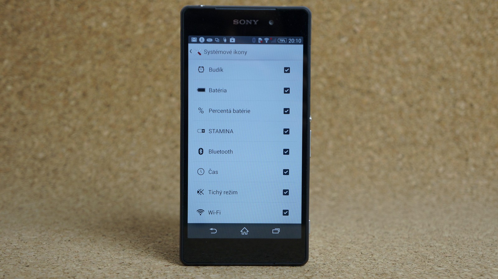 Prostredie od Sony nám výrazne dospelo a pri prechádzaní ponukou nastavení sa nestačím diviť. V hornom riadku môžem zobraziť alebo skryť percentuálny stav batérie, ikonu batérie, budíka, Bluetooth, Wi-Fi a pár ďalších systémových ikon. Vo výsuvnej lište nachádzam bohatú nádielku skratiek. Počet a rozmiestnenie si môžem meniť. Dlhším podržaním na ikone sa môžem presunúť priamo do danej funkcie alebo nastavenia. Výborná funkcia. Používam ju aj na mojom Galaxy Note 2.