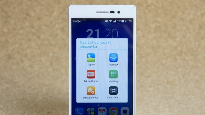 Operačný systém Android vo verzii 4.4 dopĺňa nadstavba EmotionUI od výrobcu. Dizajnovo mi trochu pripomína prostredie iOS. Prvú inšpiráciu hľadajte hneď na zablokovanej obrazovke. Z jej spodnej časti sa vysúva lišta s počasím a užitočnými skratkami. Rýchle aktivovanie svietidla alebo spustenie kalkulačky? Kde sme to už len videli... Koniec irónie. Zablokovaná obrazovka sa vydarila a mne vyhovovala. Zobrazuje notifikácie zmeškaných udalostí, ktorých potiahnutím sa dostanem priamo do danej aplikácie a pri spustenom prehrávači tu nájdem ovládanie a veľký obrázok albumu.