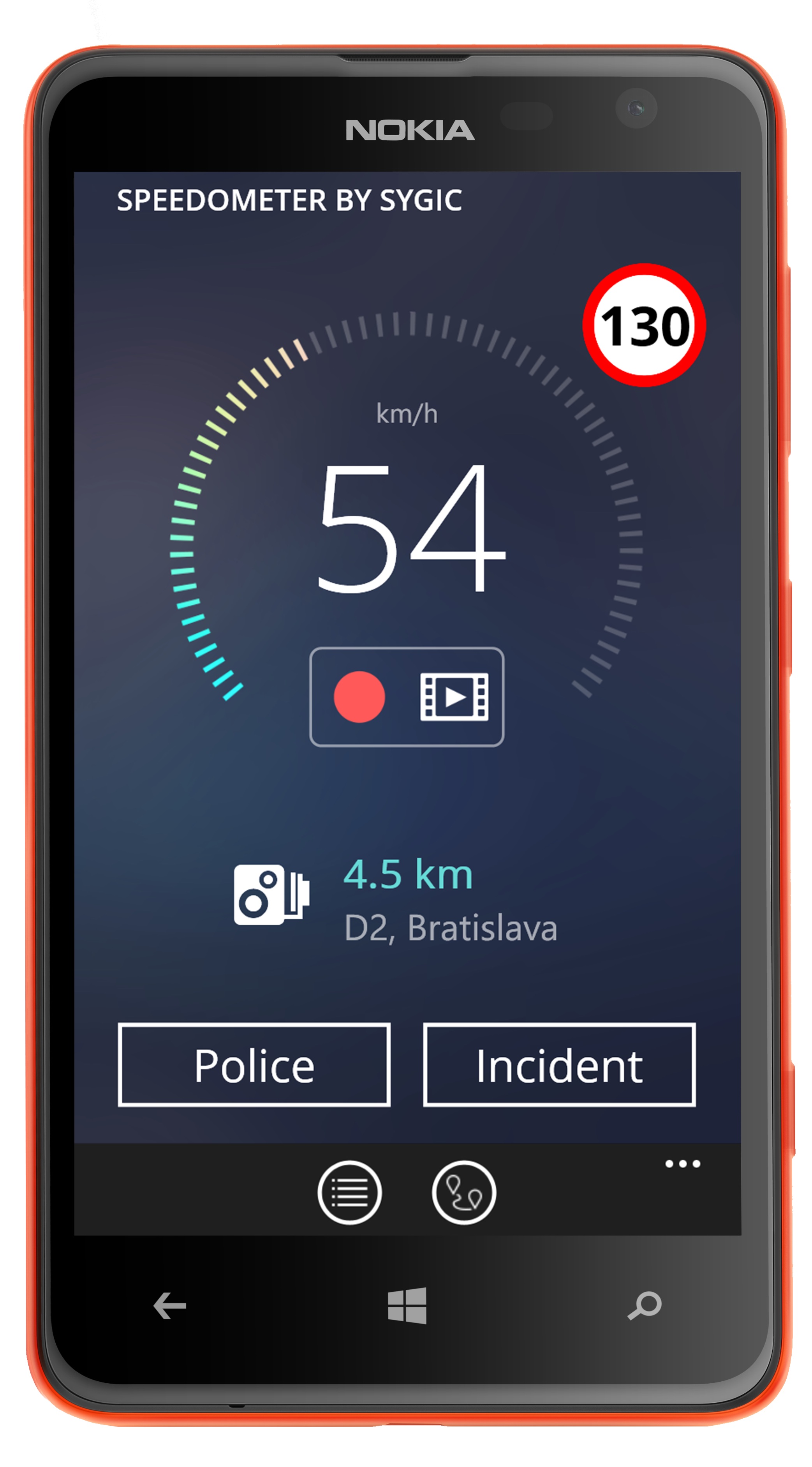 Aplikácia Speedometer by Sygic umožní policajtom vyšetrujúcim dopravné nehody pozrieť si záznam nehody v službe Azure Cloud od spoločnosti Microsoft. Na rozdiel od záznamov z iných palubných kamier sa záznam uložený v cloude nemôže upravovať a zahŕňa dátum, súradnice GPS a rýchlosť pri nehode. Aplikácia môže zaznamenať 5 minútové slučky s 1-minútovými segmentmi, pričom najstaršie video sa odstráni.