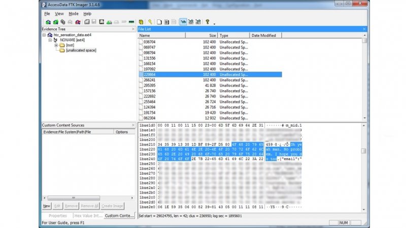 Hoci boli údajne všetky dáta "vymazané", analytikom sa podarilo nájsť viac než 40 000 fotografií, 1 000 záznamov z vyhľadávania Google, 750 e-mailov a SMS či 250 kontaktov s e-mailovými adresami.
