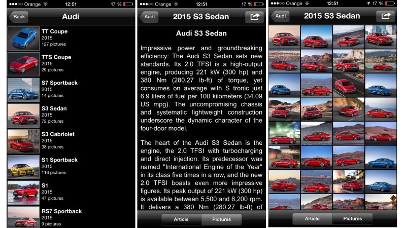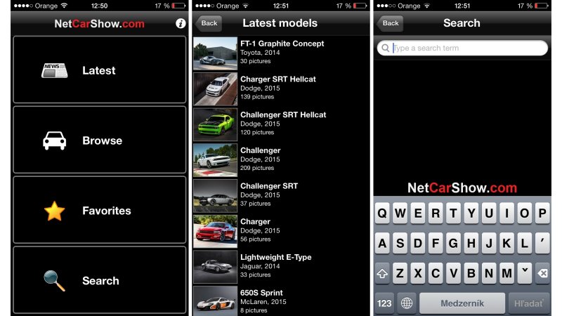 Nová verzia v App Store nepristála už takmer dva roky, no to vôbec nevadí a aplikácii radi odpustíte aj zobrazovanie starej klávesnice. Uvíta vás štvorica tlačítok - prvé zobrazí posledné aktualizované modely s najnovšími fotografiami, druhé spustí vyhľadávanie tak ako na plnohodnotnej webovej stránke a ďalšie umožnia rýchly prístup k uloženým obrázkom či fulltextové vyhľadávanie.