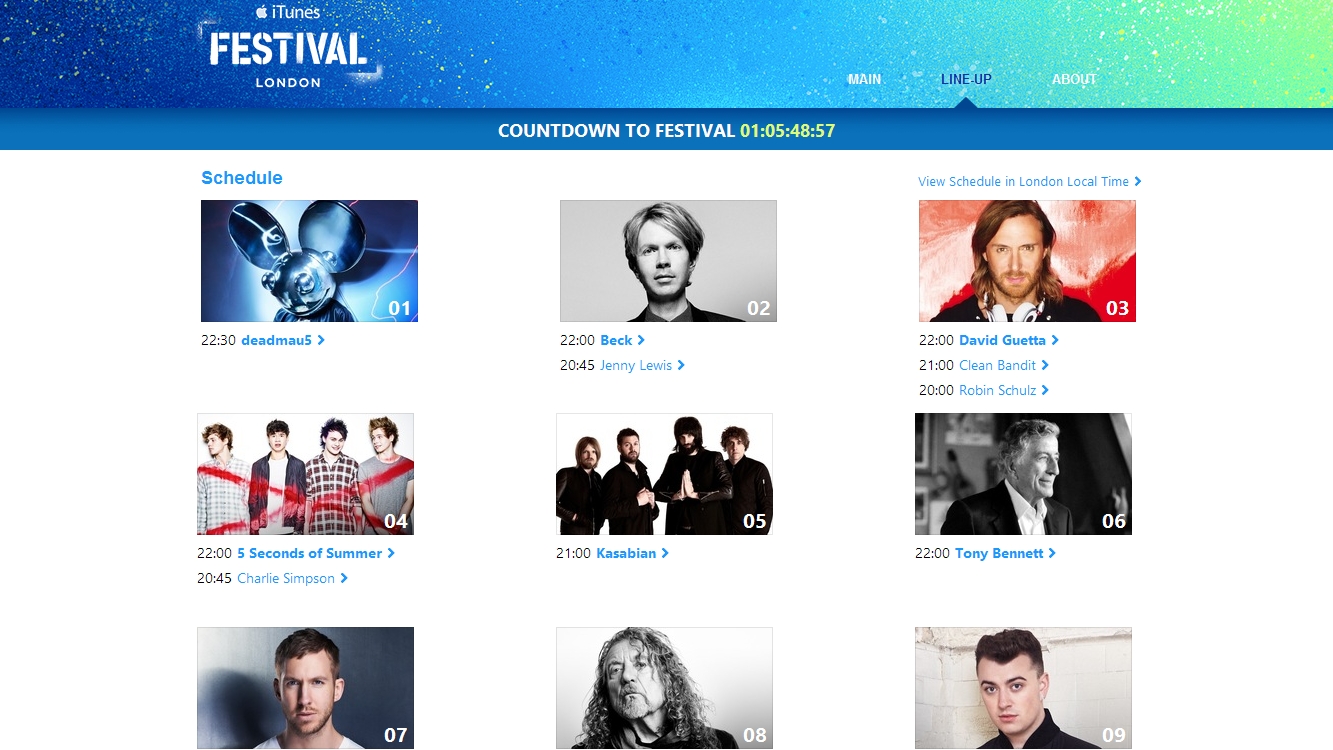 Podrobný program koncertov nájdete na webe www.itunesfestival.com alebo v samostatnej karte v iTunes.