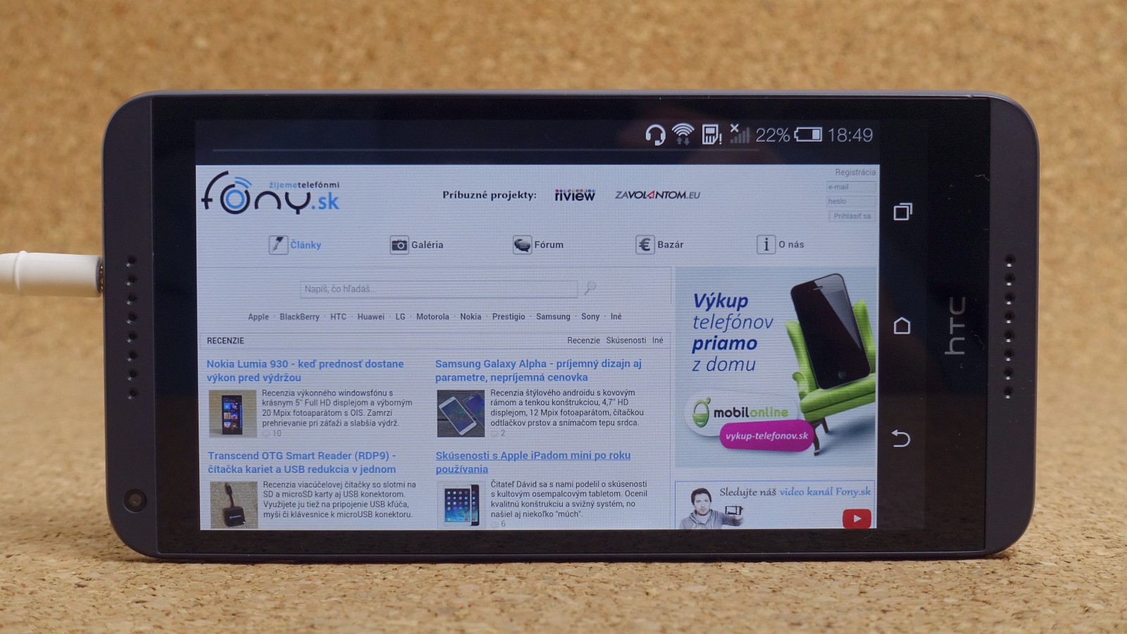 Základné info: HTC Desire 816Tabletofón strednej triedy s OS Android 4.4, štvorjadrovým procesorom, 5,5'' HD displejom,13 Mpix zadným fotoaparátom, 5 Mpix prednou kamerou, prednými stereo reproduktormi a 2 600 mA batériou. |