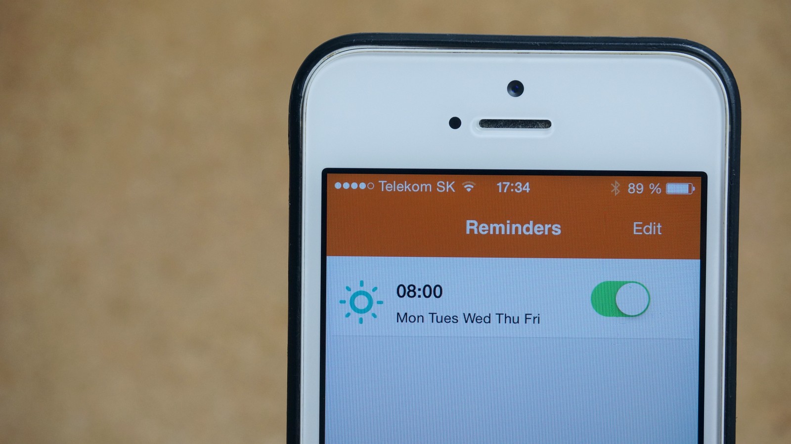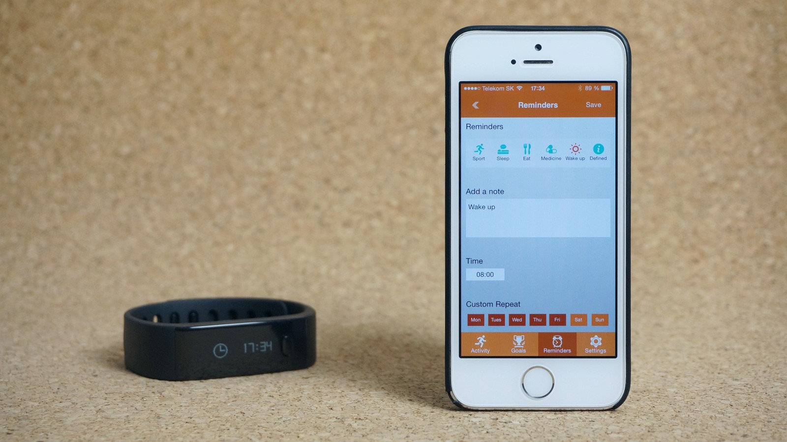 Bonusom je nastavenie piatich rôznych budíkov v priebehu dňa. Každý môže vibrovať vo vami určených dňoch od pondelka do piatku, takže to môžete využiť nielen ako ranný budík, ale aj na pripomienku požívania liekov, času na jedenie, atď. Synchronizácia aplikácie je manuálna, stačí stlačiť refresh tlačidlo na displeji mobilu a rozsvietiť hodinky stlačením jediného tlačidla.