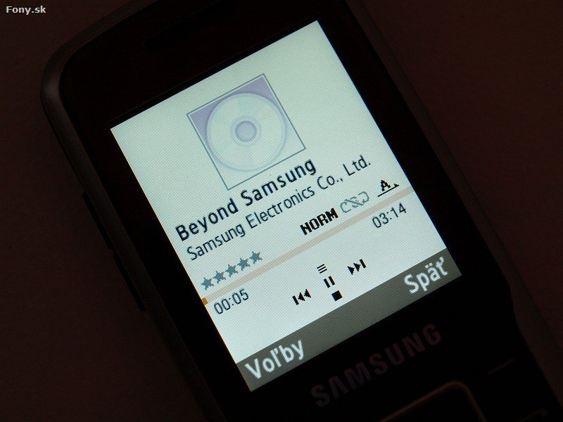 vám umožní všetko to, na čo ste zvyknutí z vyšších modelov. Triedenie hudby, hodnotenie, nastavovanie, ekvalizér či prehrávanie na pozadí. Už dávnejšie som postrehol aj užitočnú funkciu automatického vypnutia prehrávača, ktorá sa hodí najmä pri zaspávaní. Prehrávanie cez externý reproduktor je dostatočne hlasné, toto Samsung zvládol na výbornú už aj v low-endoch. Pri prehrávaní hudby sa však už aj tak pomalšie reakcie telefónu ešte viacej spomalia a telefónu tak grafické efekty ako prechody v menu trvajú o poznanie dlhšie. Dodávané slúchadlá sa vyrovnajú bežným značkovým slúchadlám v hodnote 10 eur.Prítomné je aj jednoduché