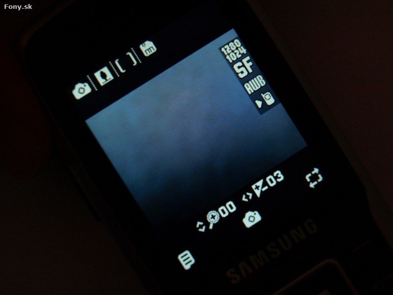 sa dostanete okrem menu aj klávesovou skratkou s logom. Po prvom spustení si určite nezabudnite zmeniť nastavenie hľadáčika na "so štandardným pomerom strán". Inak nikdy v hľadáčiku neuvidíte celú snímku. Megapixelový fotoaparát robí fotografie nízkej kvality čo vidno hlavne pri priblížení snímky alebo po odoslaní do počítača. Jeho možnosti sú ale rôzne. Ponúka na výber z viacero rozlíšení, časovač, efekty, rámčeky či vyváženie bielej. Okrem fotoaparátu si môžete nakrútiť aj video s dĺžkou závisiacou len od kapacity pamäťovej karty. Jeho rozlíšenie je však limitované na 176 x 144 bodov. Pri prezeraní snímok a videí stačí stlačiť mriežku a prezeranie nasleduje v celoobrazovkovom režime.Štandardný, no výborný Samsungový