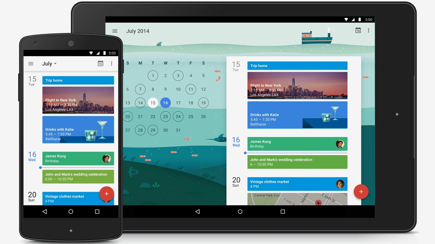 Zmenené sú aj mesačné a týždenné náhľady a všetko konečne, narozdiel od väčšiny natívnych kalendárov v systéme, ladí s dizajnovým jazykom Androidu 5.0. Asistované nápovedy pri vytváraní udalostí si však v slovenčine neužijete a na našom území mierne zaostáva aj spomínané extrahovanie obrázkových podkladov pri cieľových lokalitách. I tak je ale Google Calendar zatiaľ najkrajším kalendárom medzi natívnymi aplikáciami. Používať ho môžete na zariadeniach s Androidom 4.1 a vyšším.