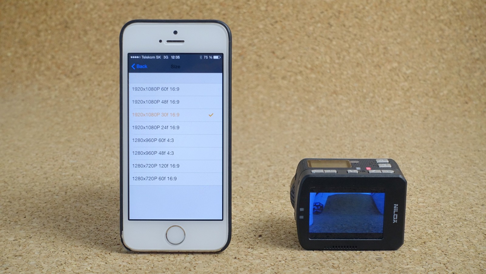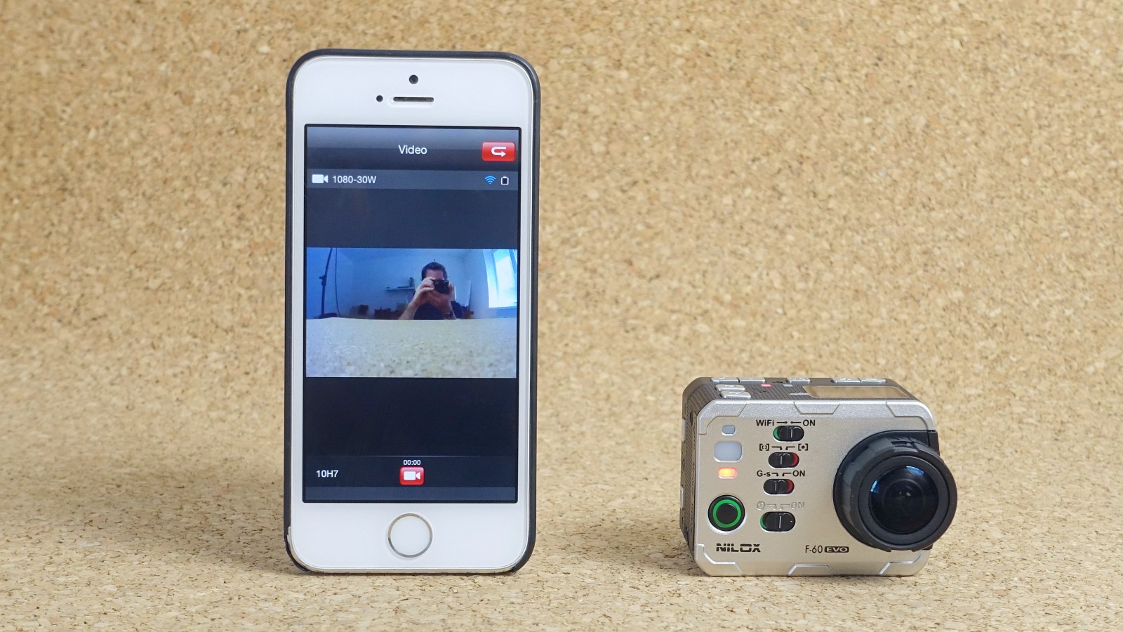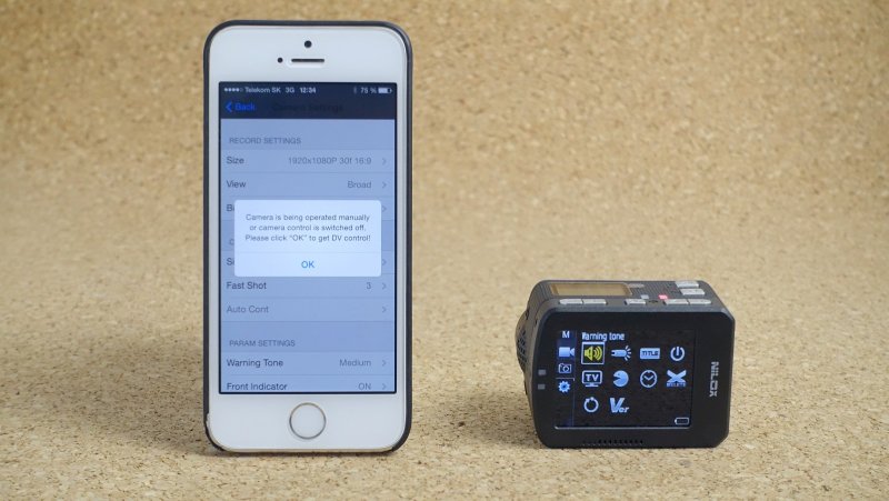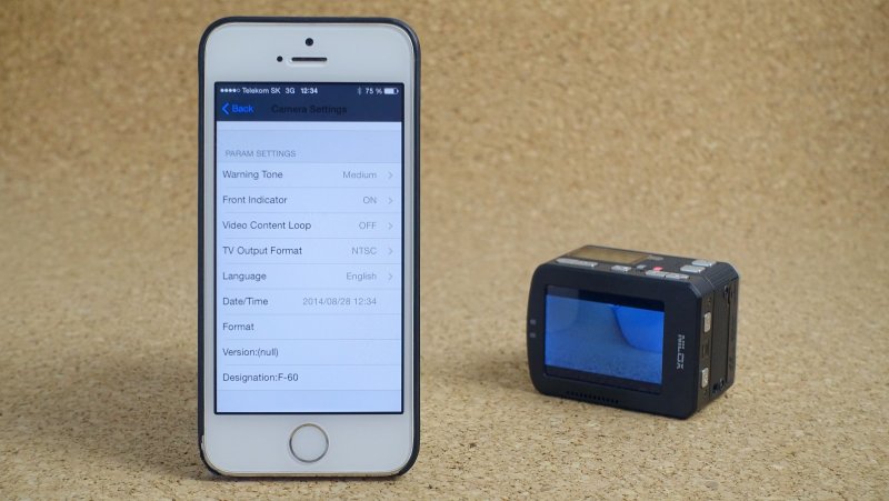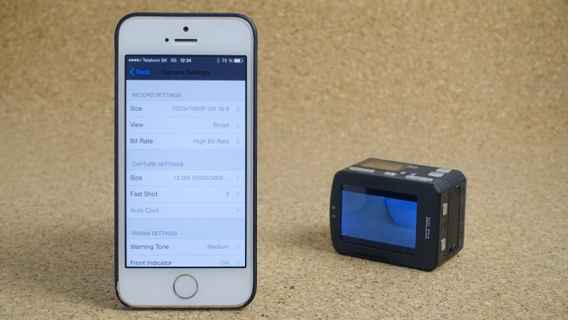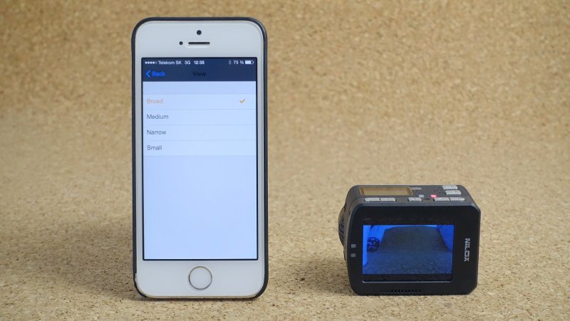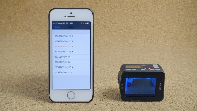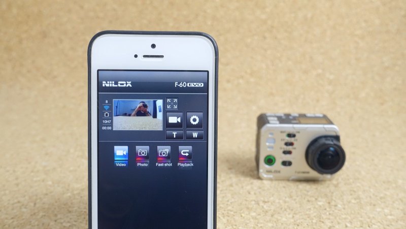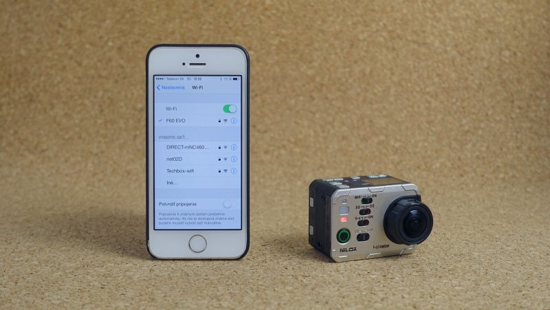 Nilox F60 EVO môžete pripojiť k iOS alebo Androidu pomocou aplikácie a Wi-Fi pripojenia. Na iPhone musíte najprv vyhľadať Wi-Fi sieť, ktorú kamera vytvára, až potom zapnúť aplikáciu. Vďaka aplikácii nepotrebujete ani displej na kamere - na obrazovke smartfónu vidíte aj obraz snímaný kamerou (s asi sekundovým oneskorením) a máte tu veľmi pohodlnú možnosť meniť aj jej nastavenia.