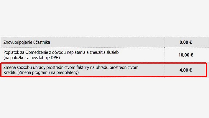 A ako je na tom konkurencia? V Telekome zaplatíte za zmenu 3,98 eur, a je jedno, či prechádzate z predplatenej karty na paušál alebo naopak. Platíte vždy. Ale pozor! Ak zažiadate o zmenu programu služieb častejšie než dvakrát za jeden kalendárny rok, bude vás to stáť 19,92 eur.