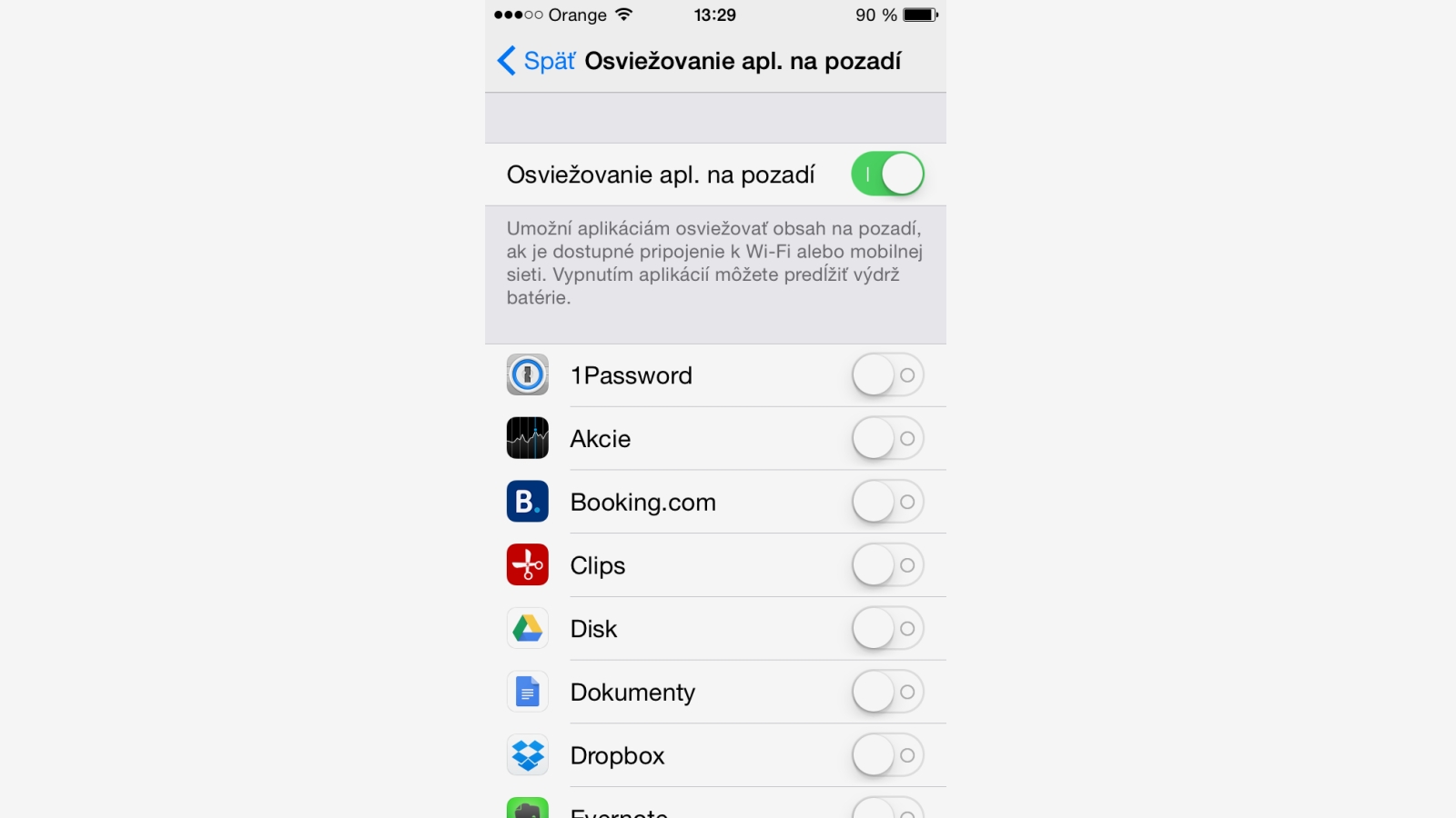 Osviežovanie aplikácií na pozadí mám takmer celoplošne vypnuté, nemá totiž žiadny vplyv na prijímanie notifikácií a upozornení. Výnimku tvorí len Gmail a Tweetbot, kde by ma niekoľko sekúnd trvajúce načítavanie aplikácie po jej otvorení obťažovalo.