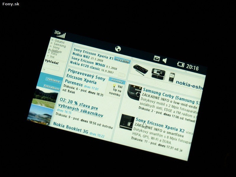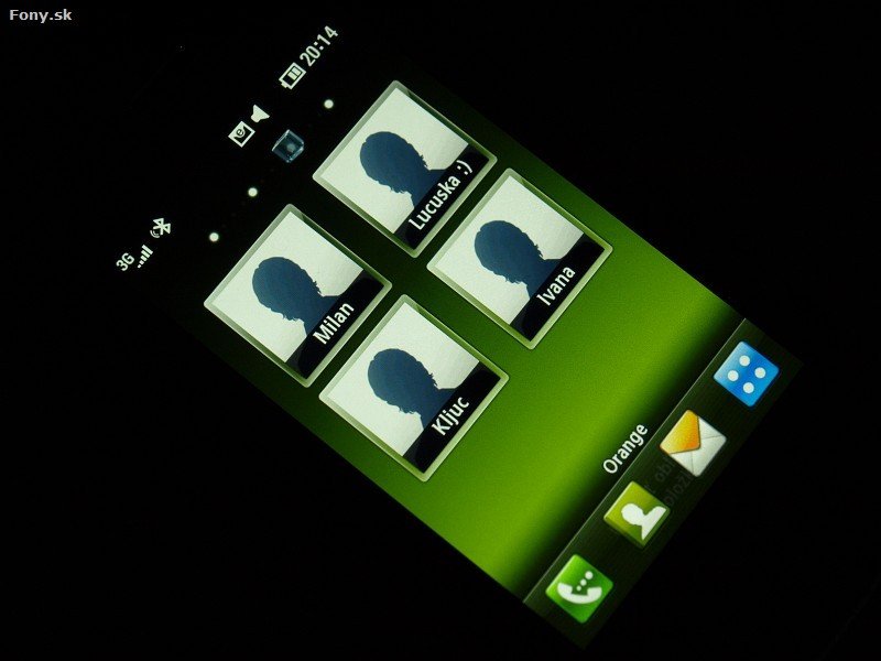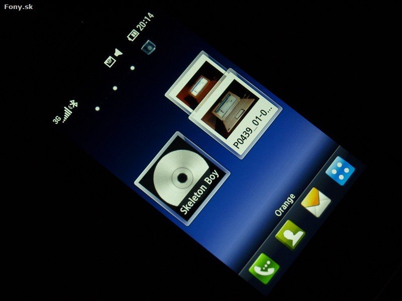 . Tá je tvorená jemnou dotykovou plochou, takže jej ovládanie je taktiež dotykové. Našťastie pri písaní nie je treba vynakladať silu, nakoľko citlivosť klávesnice je rovnaká ako pri kapacitných displejoch. Klávesnica je tvorená tenkou, asi 2 mm hrubou plochou, ktorá sa v zadnej časti spája s priehľadným zadným krytom a tvorí tak jeden celok. Možnosti využitia klávesnice sú rôznorodé, môžete ju využívať na písanie, multitouch zoomovanie, ako myš v prehliadači či na pohyb v menu. Zaujímavosťou je taktiež aj inteligentné spúšťanie rôznych funkcií pomocou dotykových skratiek. Predstavte si, že na klávesnici nakreslíte trojuholník a dostanete sa do kalendára. Alebo napíšete S a spustia sa správy. Oceňujem takéto vychytávky, ktoré zrýchľujú prácu s telefónom. , spolu s dotykovou klávesnicou, je hlavným ovládacím prvkom telefónu. Nakoľko je kapacitný, telefón neobsahuje v základnom balení stylus. Trojpalcová uhlopriečka v kombinácii s vynikajúcim rozlíšením 480 x 800 bodov vyzerá fantasticky, latka kvality je teda v prípade LG Crystal nastavená naozaj vysoko. Reakcie na dotyk sú pomerne rýchle a presné, telefón za ne chválim. Oneskorené reakcie cítiť iba pri zobrazovaní miniatúr v galérii a pri multitouch zoomovaní na webe. Displej si však zaslúži pochvalu. Štandardnou nevýhodou, ktorá neobišla ani Crystal, je slabá viditeľnosť na priamom slnku. sa, rovnako ako v Arene, nápadne podobá iPhonu. Položky sú však rozdelené do štyroch riadkov, v ktorých sa individuálne posúvate ťahom prsta. Toto rozdelenie je pre mňa veľmi prehľadné. V prvom riadku si nájdete funkcie spojené s komunikáciou, v druhom multimédiá, tretí ukrýva nástroje a štvrtý nastavenia. Nastavenie displeja umožňuje voľbu zvuku či vibrácie pri odozve dotyku. Okrem štandardných možností ako zmena tapety, výberu z dvoch tém (biela a čierna), času podsvietenia a jasu si môžete zvoliť aj štýl a veľkosť písma. Za zmienku stojí aj skvelý animovaný tutorial, ktorý sa spustí vždy po vložení novej SIM karty. Ten vás po zapnutí telefónu prevedie nastavením základných funkcií (jazyk, čas, e-mailové konto) a takisto ukáže ako s telefónom pracovať a ovládať jeho funkcie. Výborná funkcia pre používateľa, ktorý sa s dotykovým ovládaním stretáva po prvý raz.Domáca obrazovka je tvorená už známym užívateľským prostredím S-Class 3D UI. Čakajú vás štyri obrazovky, ktoré si môžete plne prispôsobiť. Na prvú obrazovku si môžete navoliť