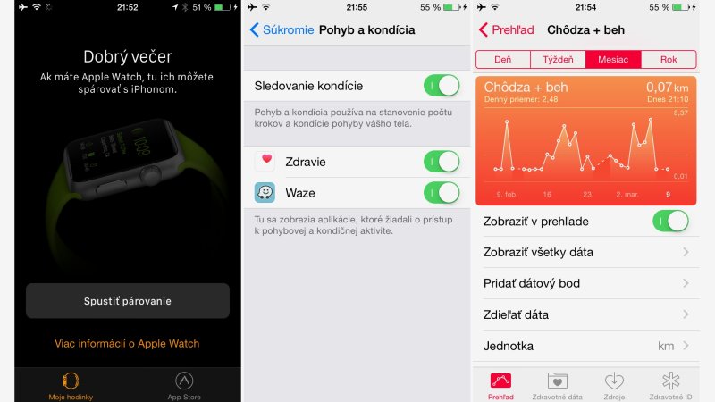 Párovacia aplikácia pre hodinky sa automaticky zobrazí ako nová aplikácia, no všetko nasvedčuje tomu, že Watch budú fungovať iba s iPhonom 5 a novšími. Aplikácia Zdravie je teraz oveľa rýchlejšia a v nastaveniach súkromia pribudla možnosť vypnúť automatické počítanie krokov a prejdenej vzdialenosti. Vplyv na výdrž by však mal byť minimálny.