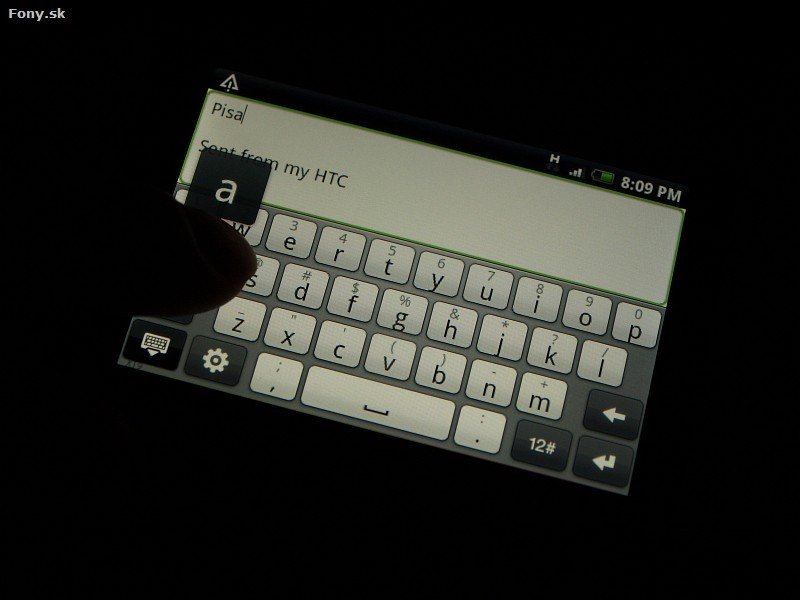 , ktorá sa zobrazí štandardne na šírku, a v zúženom, no stále praktickom tvare, . Druhý typ klávesnice je tradičná alfanumerická. Posledný možný spôsob zadávania znakov je cez takzvanú kompaktnú QWERTY klávesnicu, ktorá združuje dva znaky pod jedným klávesom. Najpraktickejšie a najrýchlejšie je však využívanie štandardnej QWERTY klávesnice. V nastaveniach si môžete aktivovať korekciu písania či automatické dopĺňanie slov. Tiež je možné aktivovať zvuk či vibračnú odozvu klávesnice.Zabudovaný
