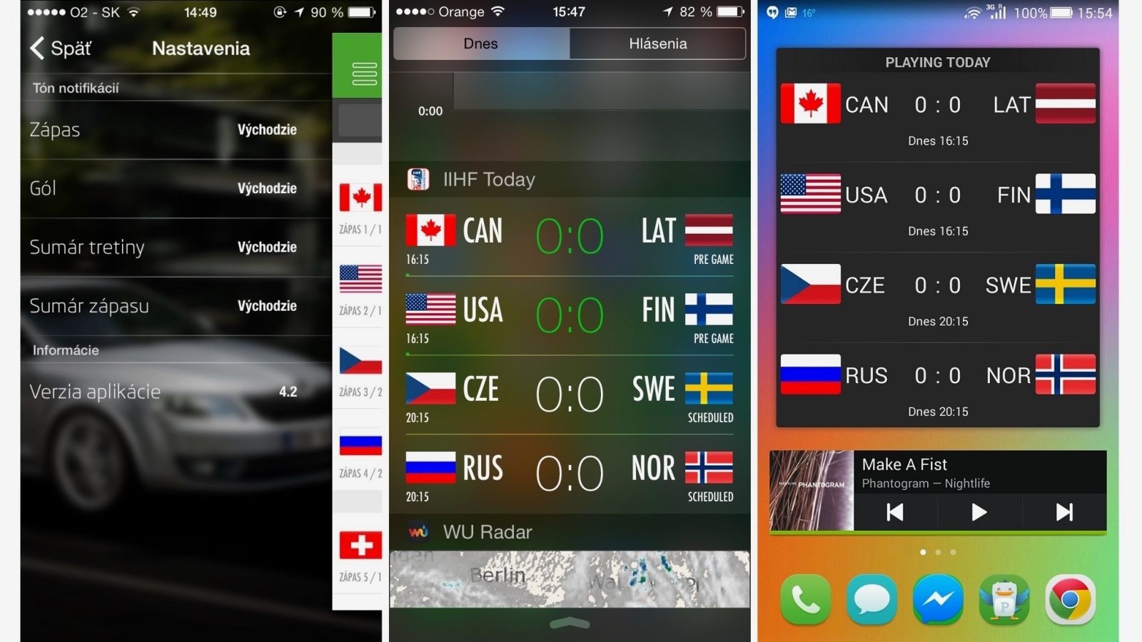 Aplikácia 2015 IIHF powered by ŠKODA je lokalizovaná aj do slovenčiny. Widgety a hlásenia v notifikačnej lište vás budú informovať o hlavných udalostiach a poskytnú denný prehľad. Svoj tím môžete podporiť potiahnutím špeciálneho tlačidla na fandenie v detaile zápasu, zanechať môžete aj osobný odkaz s použitím IIHF hashtagu, ktorý sa zobrazí vo Fan Zóne.