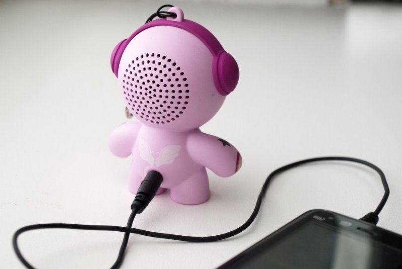 Jediným dôležitým úkonom je zapnutie "panáčika" v jeho pravej nohe. Rozsvieti sa mu srdce a teraz už stačí len pripojenie 3,5 mm káblom ku počítaču, mobilnému telefónu či MP3 prehrávaču.