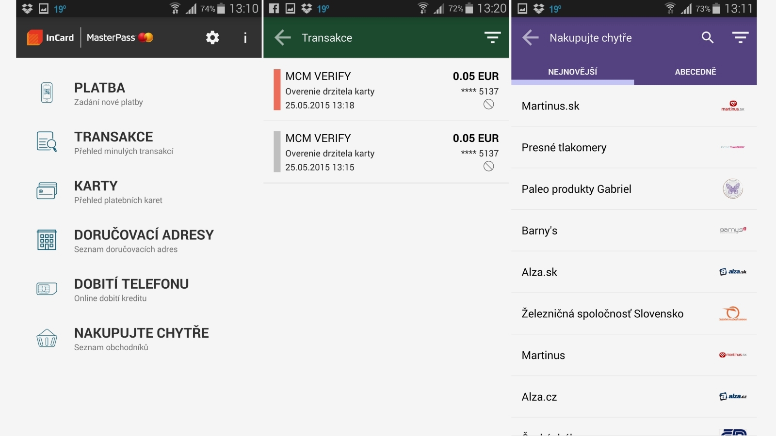 Kartová spoločnosť MasterCard k 1. júnu 2015 premenovala a redizajnovala svoju aplikáciu pre Android a my sme sa na InCard MasterPass pozreli podrobnejšie. V App Store pre iOS zatiaľ stále nájdeme len staršiu verziu pod názvom MasterCard Mobile, pravdepodobne sa to však čoskoro zmení.