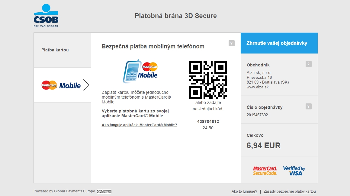 Podporované sú bežné platobné karty MasterCard, Maestro či Visa a Visa Electron vydávané slovenskými bankami. Z pokusnej platby vo výške 0,05 € bude potrebné opísať ďalší bezpečnostný kód pri názve obchodníka, možno tak budete musieť zavítať do svojho internetbankingu. Údaje z potvrdzovacej SMS z Tatra banky napríklad nestačili.