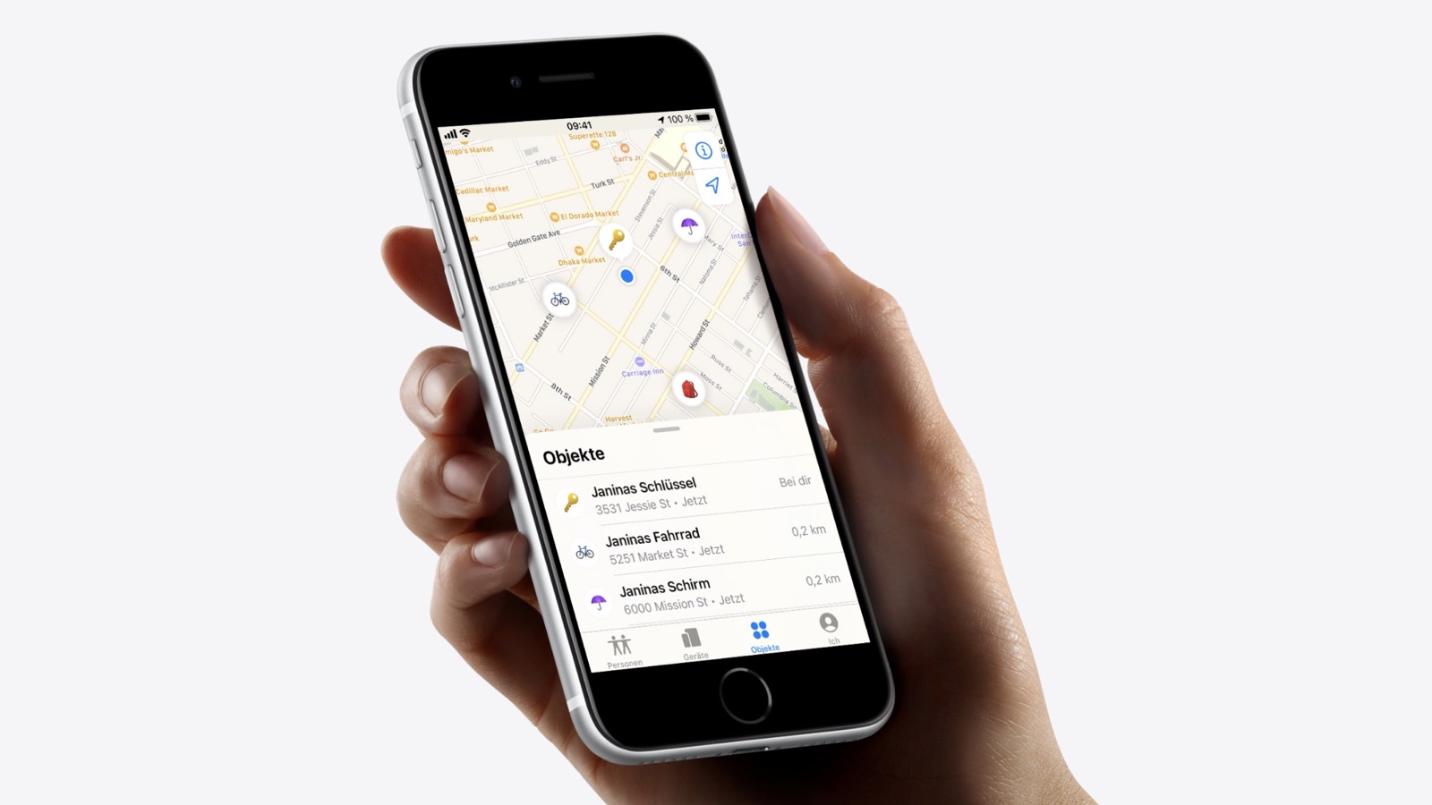 Keď je AirTag nastavený, zobrazí sa na novej karte Predmety v aplikácii Nájsť, kde si môžete pozrieť aktuálnu alebo poslednú známu polohu položky na mape. Môžete požiadať aj Siri, aby vyhľadala váš prívesok a AirTag prehrá zvuk, keď bude v okolí.