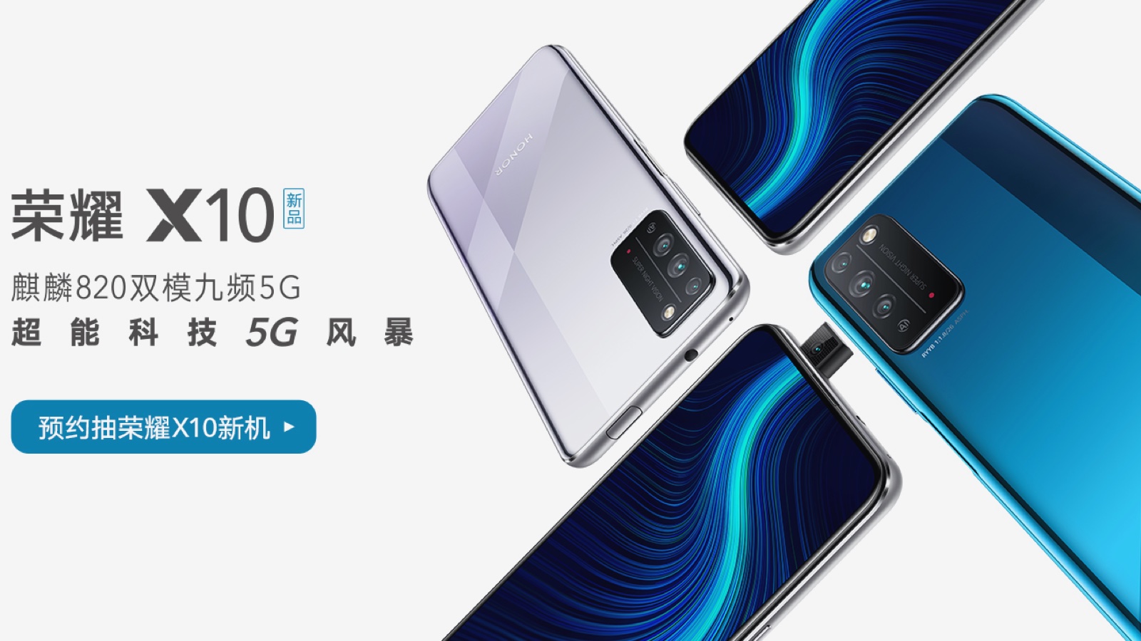 Očakáva sa, že Honor X10 5G dostane 6,63'' Full HD+ displej, 6 GB RAM, až 128 GB pamäť, 40 Mpix hlavný, 8 Mpix širokouhlý a 2 Mpix makro fotoaparát. Batéria so 4300 mAh kapacitou by mala podporovať rýchle 22,5 W nabíjanie.
