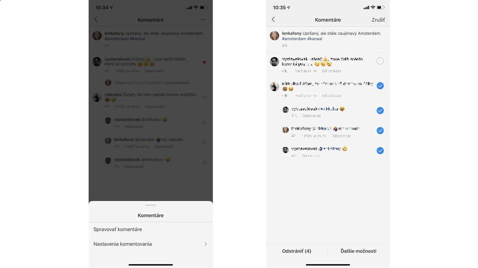 Naraz môžete zmazať až 25 komentárov. Kliknutím na Ďalšie možnosti sa dostanete k blokovaniu a obmedzeniu vybraných účtov.