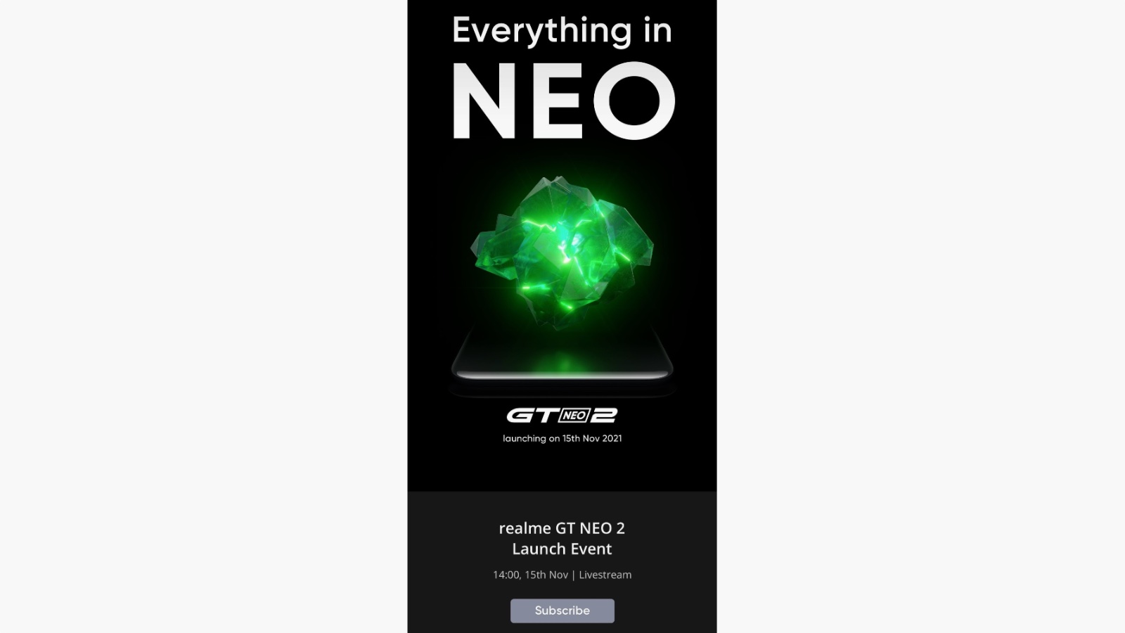 Na domácom čínskom trhu bolo Realme GT Neo2 (základné info) uvedené už v októbri, jeho globálna premiéra prebehne 15. novembra. Oznámil to výrobca na svojej webovej stránke.