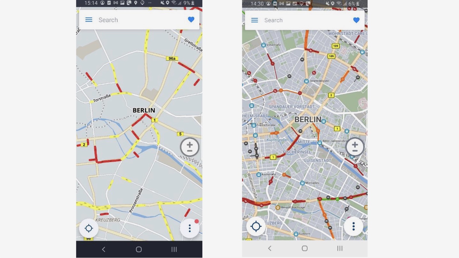 Mestské mapy majú nový a podrobnejší dizajn už pri nižšej úrovni priblíženia, zatiaľ čo dátová veľkosť mapy ostáva porovnateľná so starou verziou. Vedľajšie cesty a zelené plochy odteraz uvidíte aj bez priblíženia danej oblasti. Špecifické informácie o premávke a údržbe ciest sú na mape teraz ešte čitateľnejšie vďaka pridaným ikonám.
