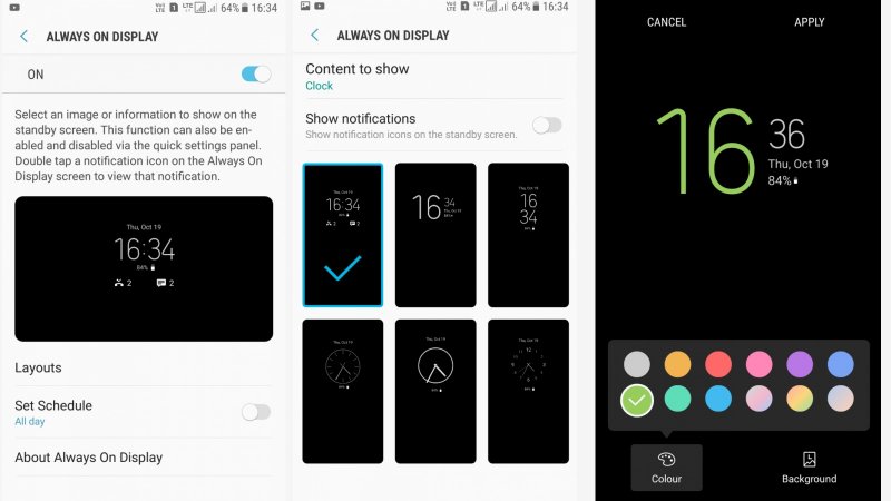 Je nutné nainštalovať obidve naraz, pretože vám umožnia používanie funkcie a jej prispôsobenie v nastaveniach telefónu, konkrétne v sekcii displej. Môžete si tam vybrať rôzne možnosti zobrazenia, ktoré zahŕňajú niekoľko typov hodín, pozadí a farieb. Vývojári upozorňujú, že aplikácia je stále vo vývoji a niektoré jej súčasti nemusia fungovať správne.