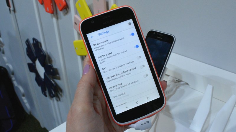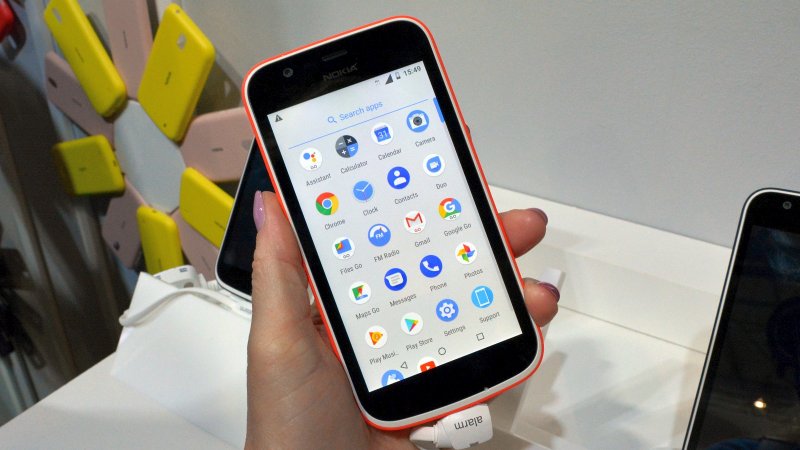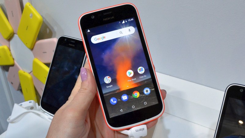 Novinkou na MWC 2018 z portfólia smartfónov značky Nokia je najlacnejší, najmenší a najslabšie vybavený model Nokia 1, určený pre nenáročných zákazníkov. Kvôli slabej hardvérovej výbave v ňom pobeží upravená verzia operačného systému Android Go s optimalizovanými aplikáciami. V polykarbonátovom tele s oblým dizajnom nájdeme len 1 GB operačnú pamäť RAM a 8 GB úložisko. Na jeho rozšírenie budete môcť použiť microSD karty do veľkosti 128 GB, prídete tým ale o dual SIM funkciu. Výrobca použil hybridný slot.