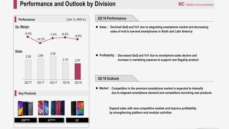 Prevádzková strata bola spôsobená aj zvýšenými marketingovými investíciami, ktoré mali posilniť rast predaja novej vlajkovej lode. V kategórii prémiových smartfónov sa očakáva zvýšenie predaja, medzi kľúčové modely patrí G7 a V35.