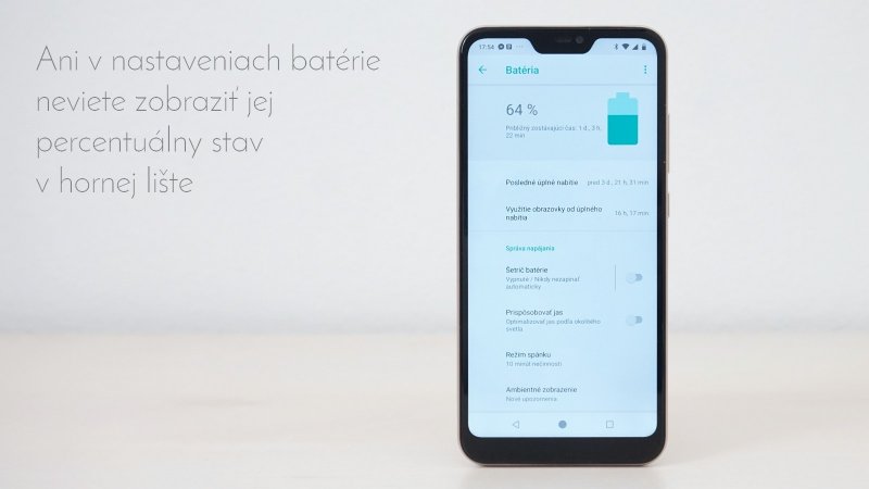 Napravo od vykrojenia vidím symbol Bluetooth, vibračného režimu, intenzitu Wi-Fi, stav siete a batérie. Ak chcete vidieť jej percentuálny stav, musíte stiahnuť hornú lištu. Percento v ikone batérie, aké ponúka aj nadstavba od Xiaomi, tu nezapnete ani po aktivácii Tunera používateľského rozhrania. Zvláštne.