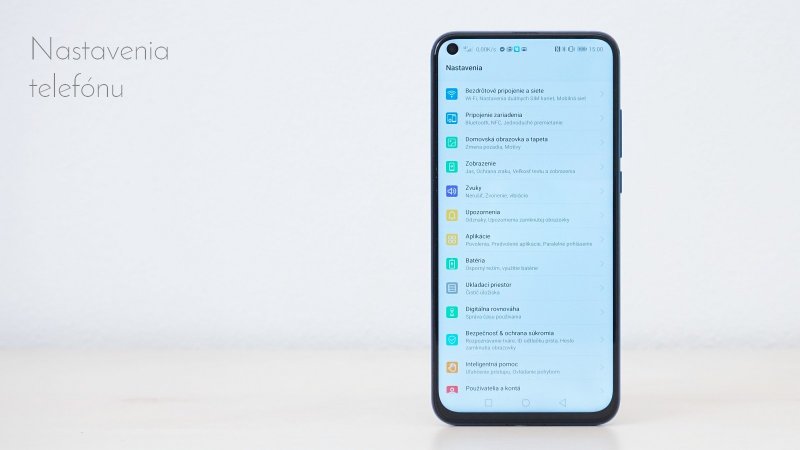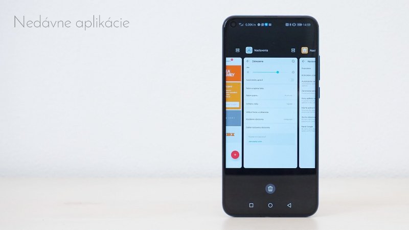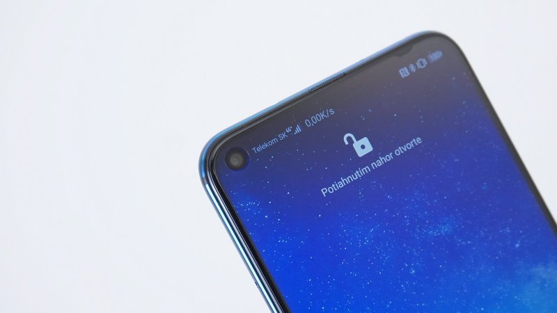 Natiahnutý Full HD+ displej je prvý v mojich rukách s dierou pre objektív prednej kamery. Vyzerá to podľa mňa dobre, pri tmavých témach si to ani nevšimnete, v hornej lište ostalo opäť miesto aj pre stav signálu operátora, Wi-Fi siete, rýchlosť prenosov a ďalšie ikony.