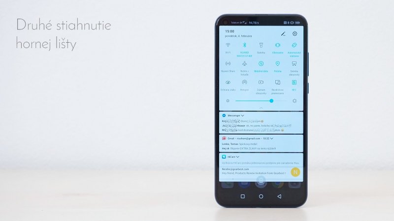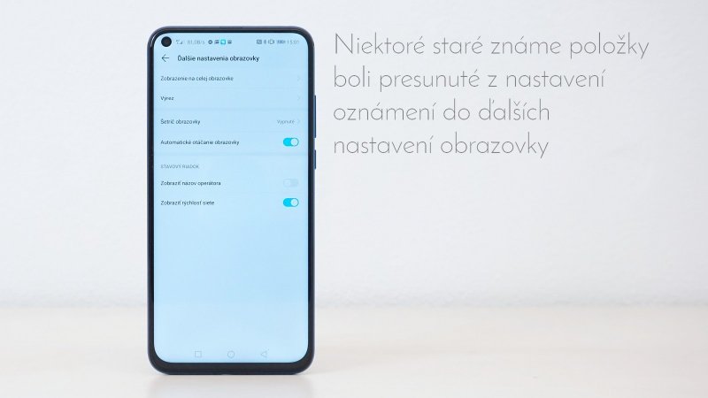 Popri NFC, Bluetooth, vibračnom režime, stave batérie a aktuálnom čase ich môžete vidieť až päť, pri vyššom počte vedľa piatej ikony pribudnú tri bodky. Nepomôže ani vypnutie rýchlosti dát. Keď si uvedomím, koľko informácií vidím okolo výrezu na nových iPhonoch, uznávam, že Huawei a Honor na to idú oveľa lepšie.