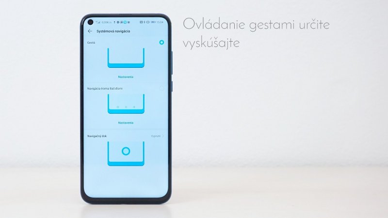 Na konci nastavení telefónu, v časti Systém - Systémová navigácia som si po pár dňoch aktivoval ovládanie gestami. Ťah odspodu nahor ma vráti domov, krok späť uskutočním ťahom palca od okraja obrazovky do strany. A fakt to funguje. Len párkrát sa mi stalo, že som sa namiesto pohybu do strany po webovej stránke či pri listovaní obrázkov vrátil o krok späť. Chce to ešte trochu cviku.