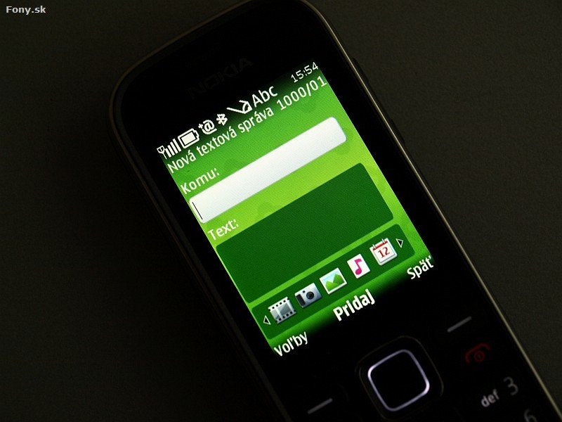 je už tradične spoločný. Rovnako aj schránka prijatých správ je spoločná. Pri písaní vidíte 7 riadkov textu, pri zvolenom normálnom písme vidíte pri čítaní až 10 riadkov. Editovanie správ umožňuje vybrať si zo štandardnej správy, bleskovej alebo zvukovej. Blesková sa zobrazí len na displeji telefónu a neuloží sa do pamäte, zvuková odošle nahrávku z diktafónu formou MMS. V nastaveniach nájdete možnosť aktivovania ukladania odoslaných správ, doručeniek či definovania obľúbeného príjemcu. V prípade multimediálnych správ a e-mailov môžete definovať automatické zmenšovanie vkladaných snímiek (od 160 x 120 až do 1 600 x 1 200).Zabudovaný